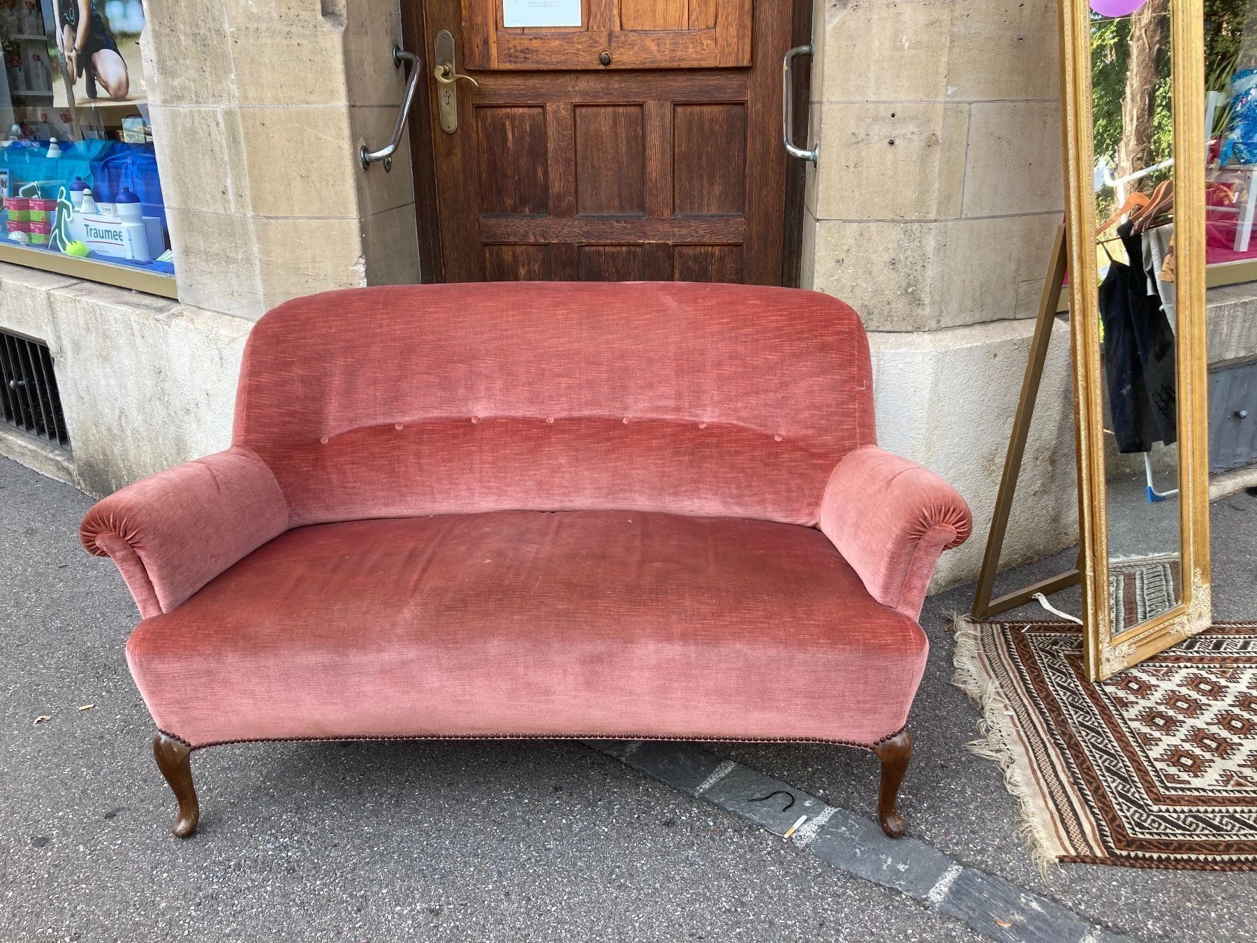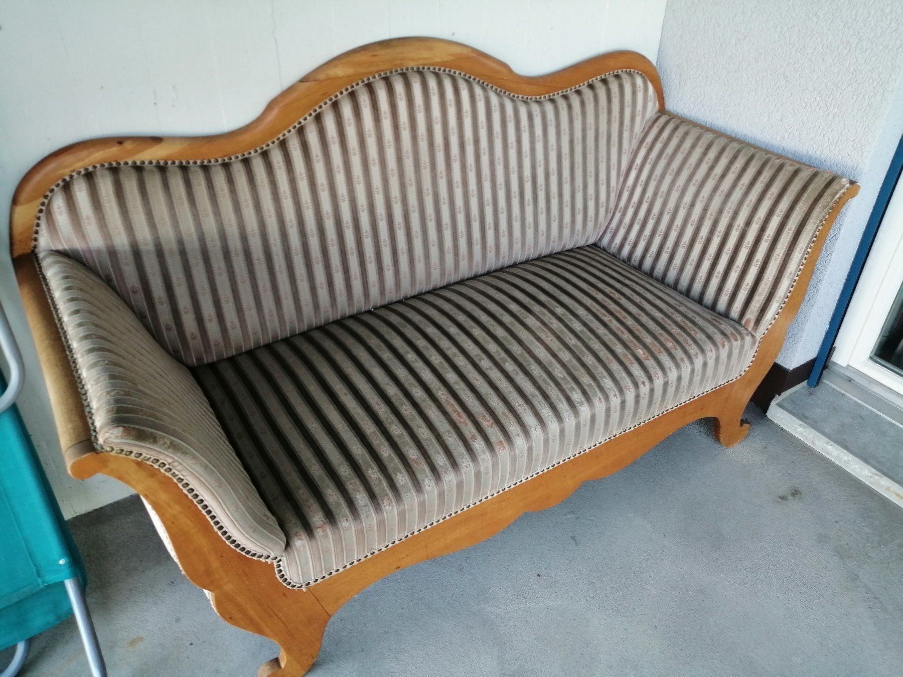 Verkaufe mein antikes sofa.das sofa wurde von mir schon mal teil eingepackt.es wurde mit einem neuen baumwollsamt und polster überzogen.auch gibt es unabhängig hier von noch einen.