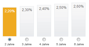 Zudem stehen weitere angebote mit einer laufzeit von drei monaten bis fünf jahren bei einer verzinsung von 0,01 % p.a.